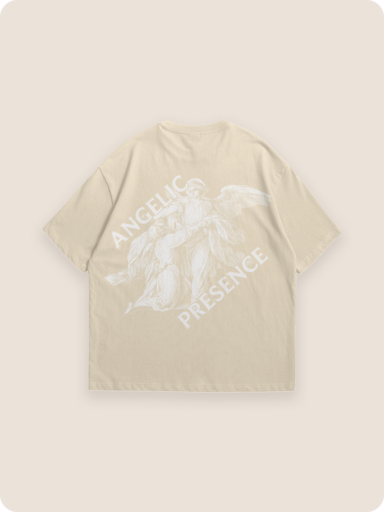 The ANGELIC PRESENCE TEE CREAMÂ short-sleeve was designed to be the first t-shirt you grab out of its peers every time. A new favourite an instant classic, made with high-quality premium organic ring-spun combed cotton that doesnât pill and looks neat and tidy all day long. Keeps you cool, gorgeous, and comfortable with a refined and nonchalant look, A perfect match for every outfit.